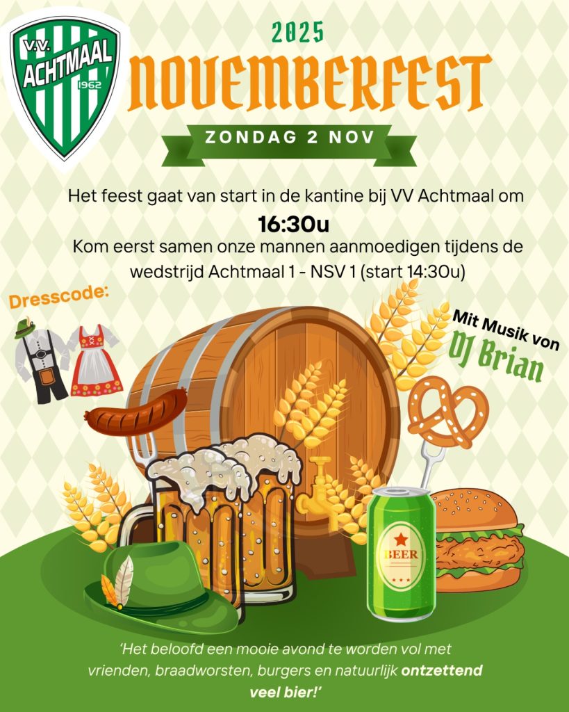Het is bijna zover, over ongeveer een maand vieren wij Novemberfest in Achtmaal! 🍻🥨